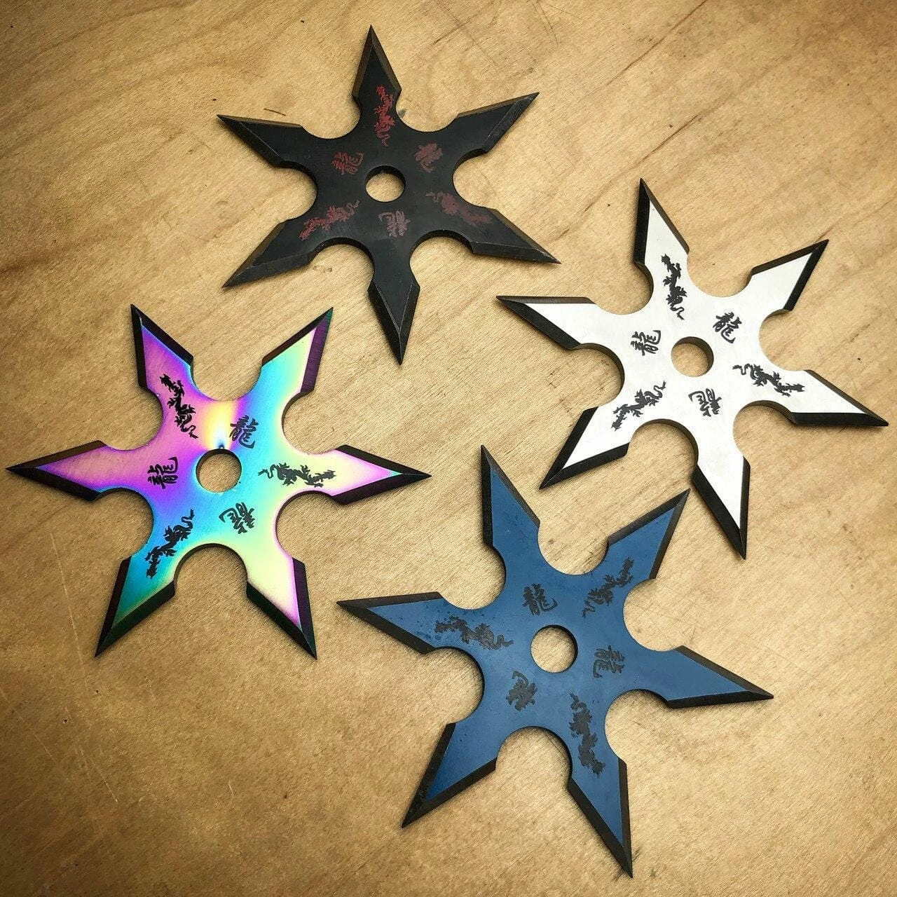 By popular demand, the 4PC Ninja throwing stars is the perfect addition to your collection. This throwing star is a perfectly balanced piece. It is constructed of heavy duty stainless steel with nylon sheath with a belt loop. Razor sharp and rock solid.