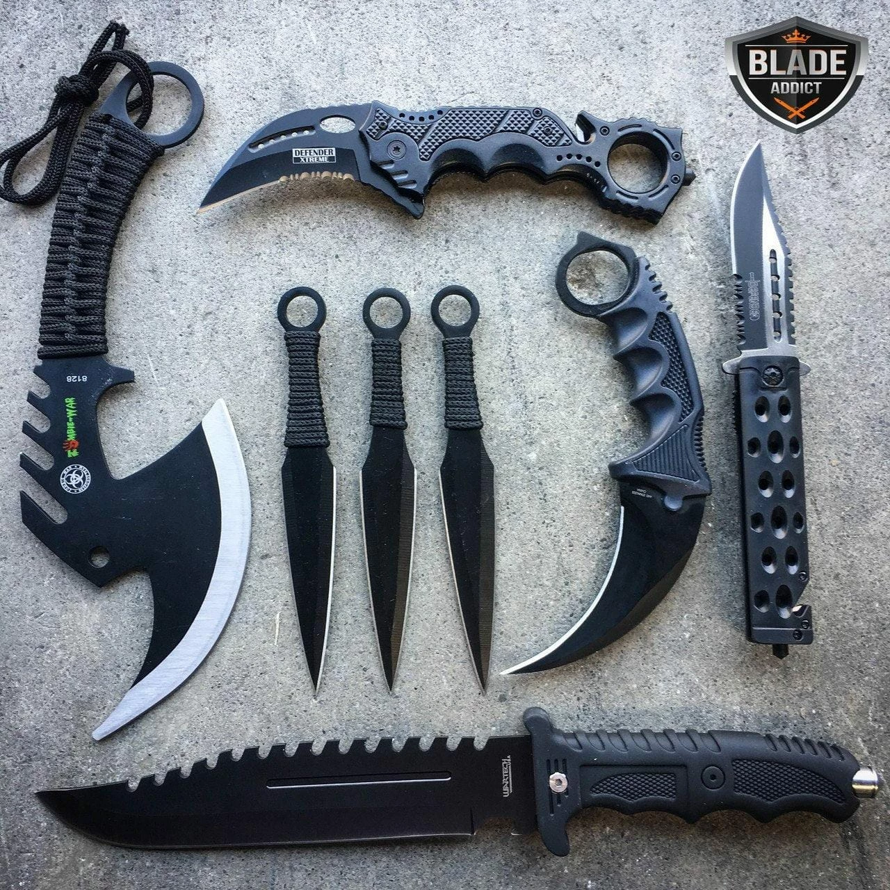 Be the first to review “8 PC BLACK Tactical Zombie Axe Fixed Blade Hunting Knife Karambit Throwing Set” Cancel reply