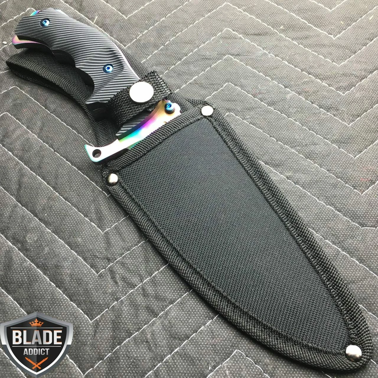 Rainbow Tactical CSGO Huntsmen Survival Knife! With this knife in hand, no one will dare want to mess with you. Black G10 Handle with Aggressive blade